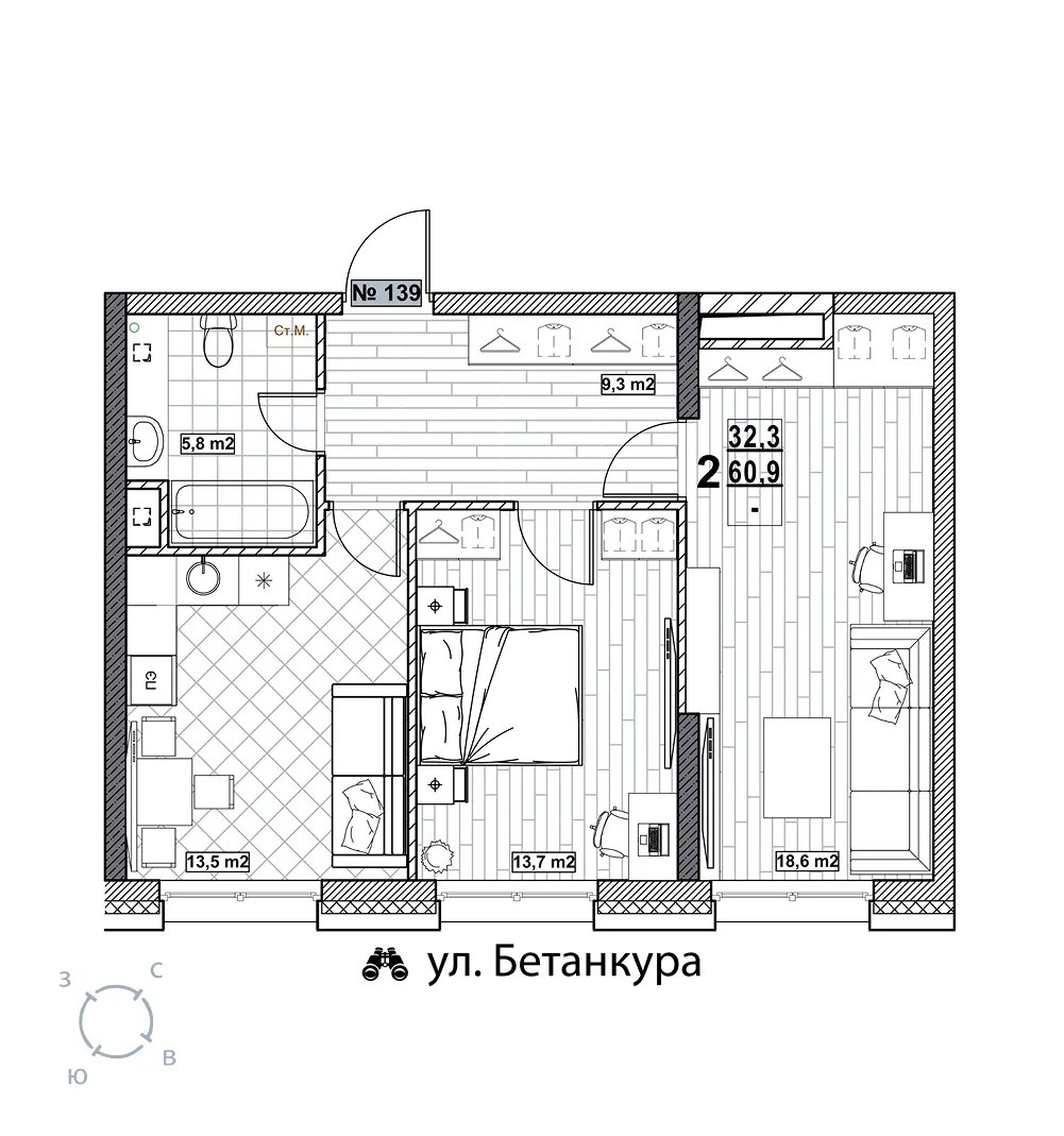 Квартира 60.9 м2