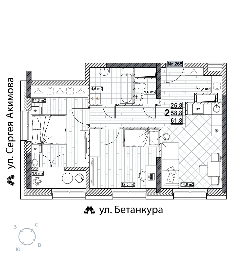 Квартира 61.8 м2