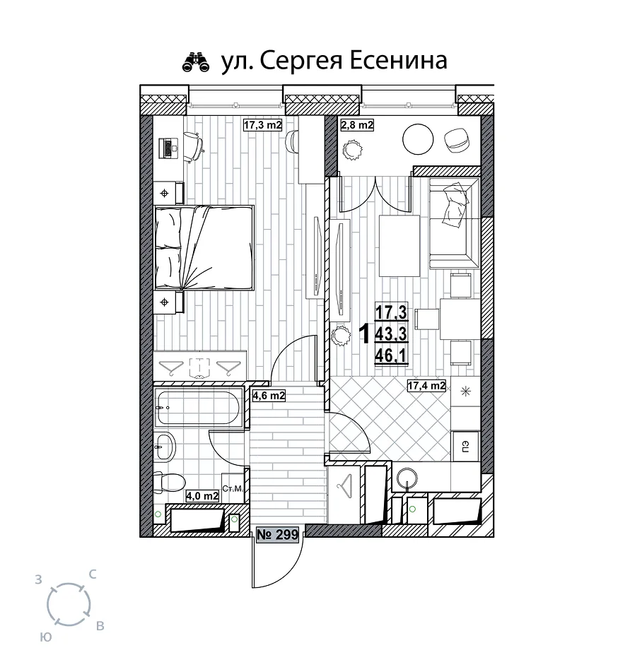Квартира 46.1 м2