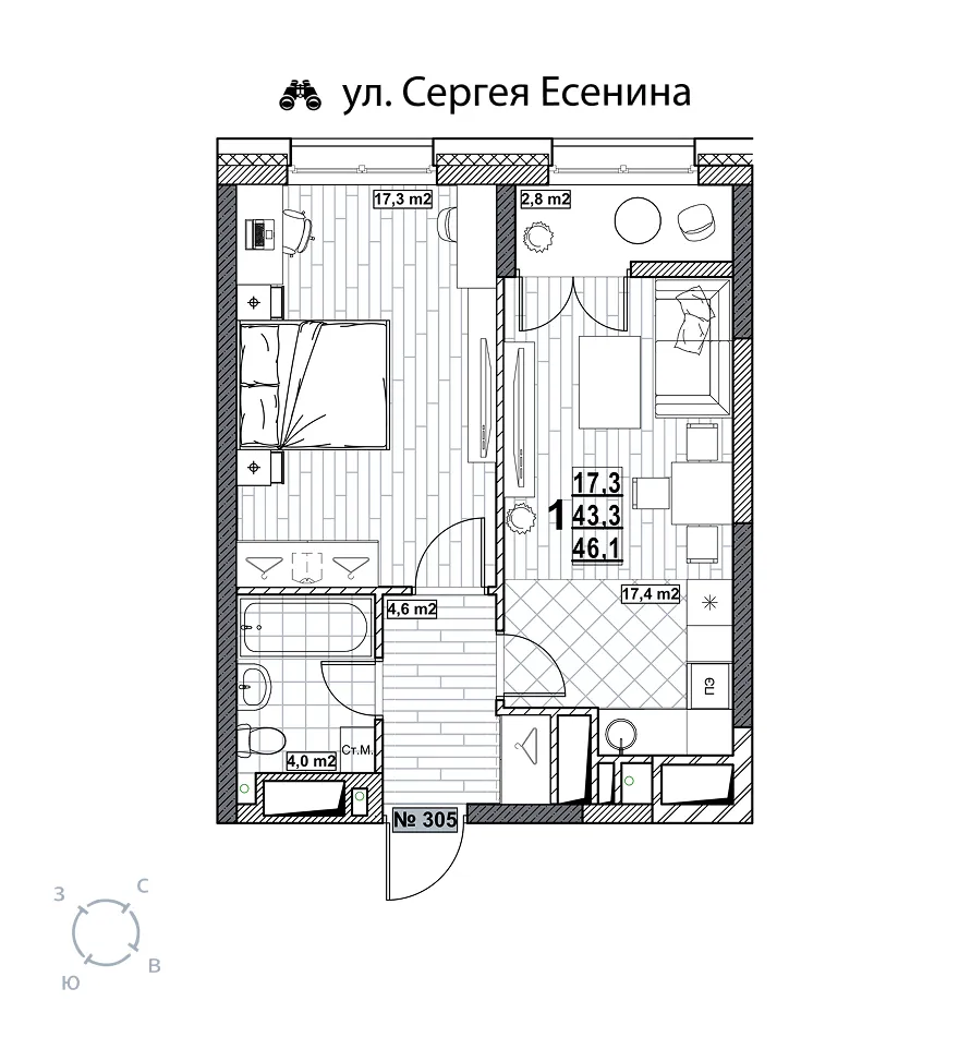 Квартира 46.1 м2