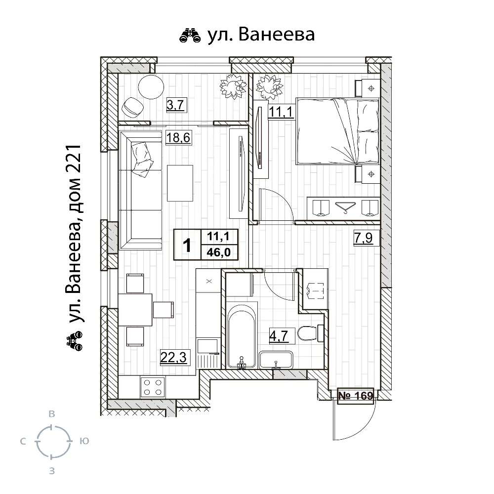 Квартира 45.9 м2