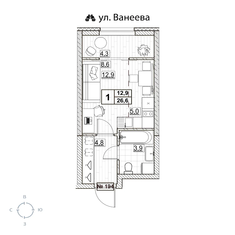 Квартира 26.6 м2