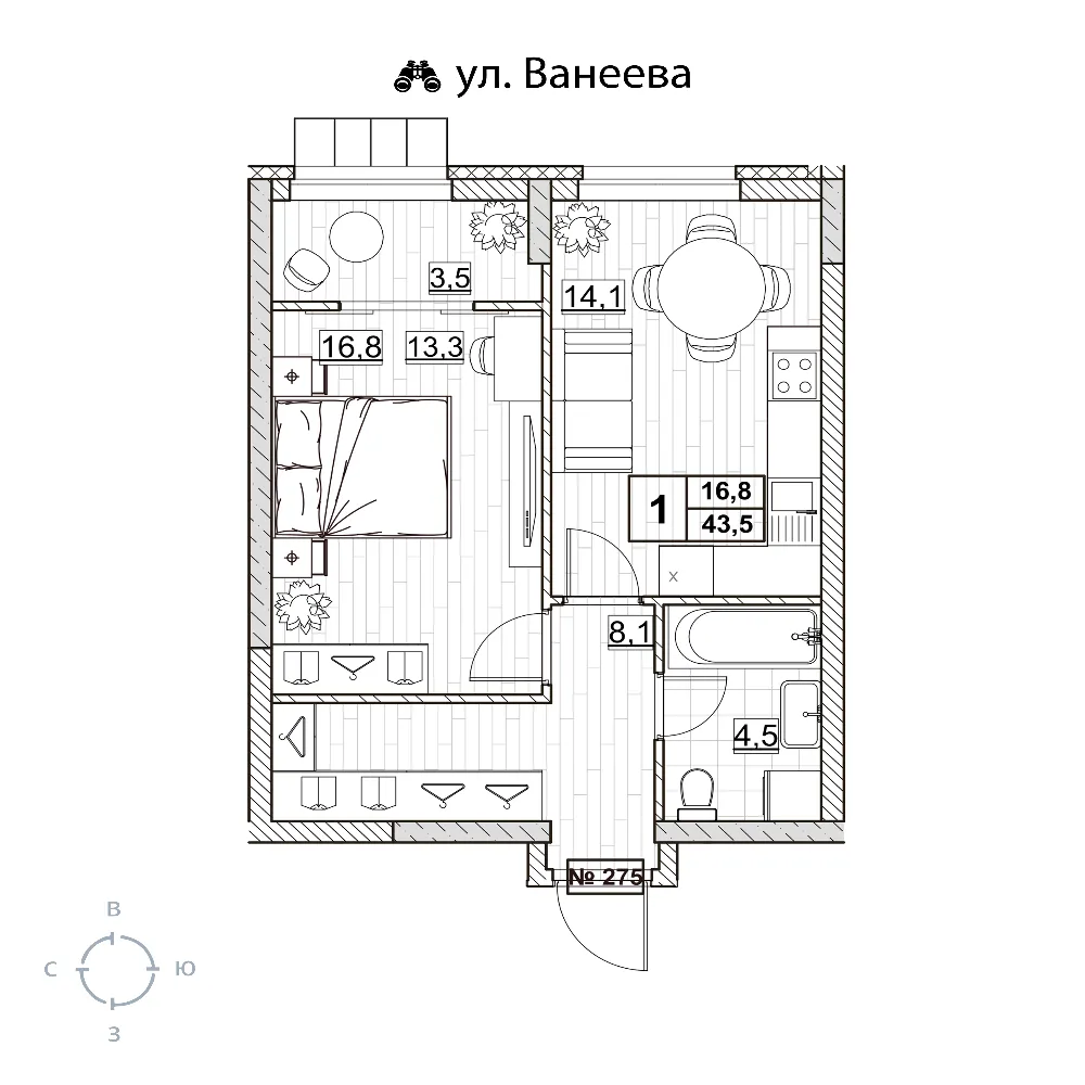 Квартира 43.5 м2