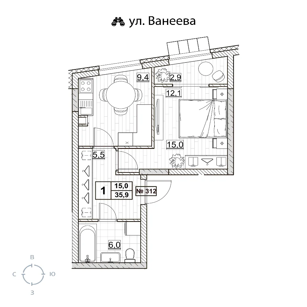 Квартира 35.4 м2