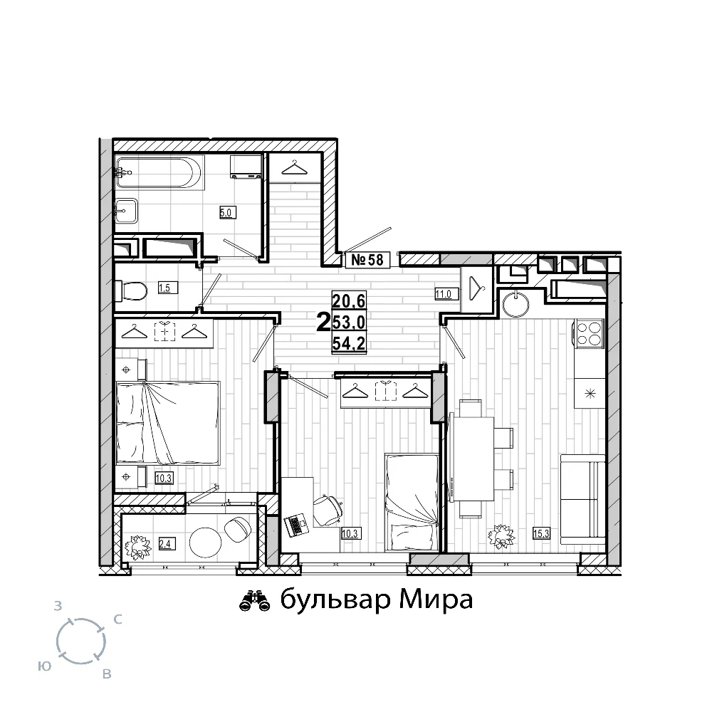 Квартира 54.2 м2