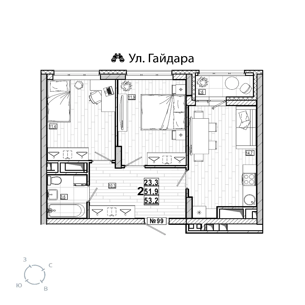 Квартира 53.2 м2