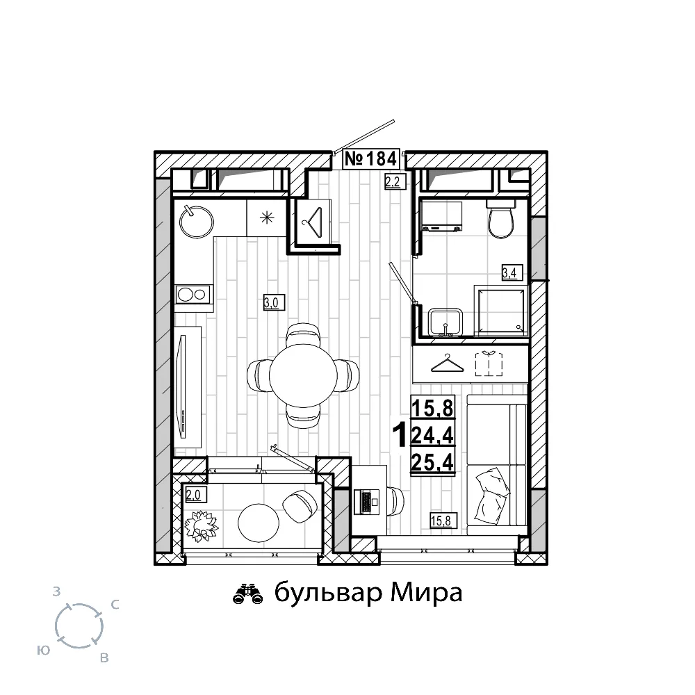 Квартира 25.4 м2