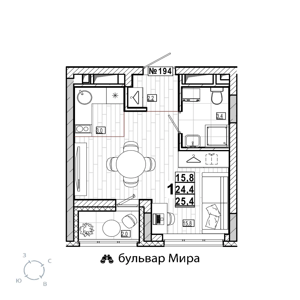 Квартира 25.4 м2