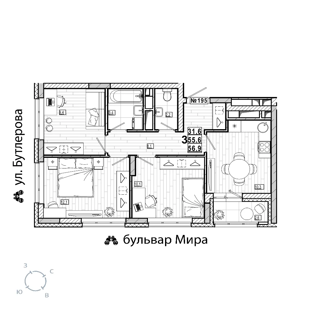 Квартира 56.9 м2