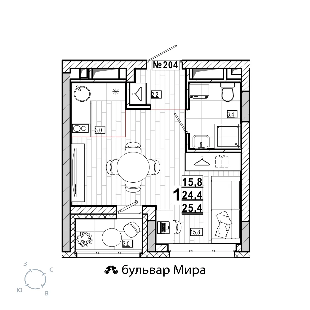 Квартира 25.4 м2