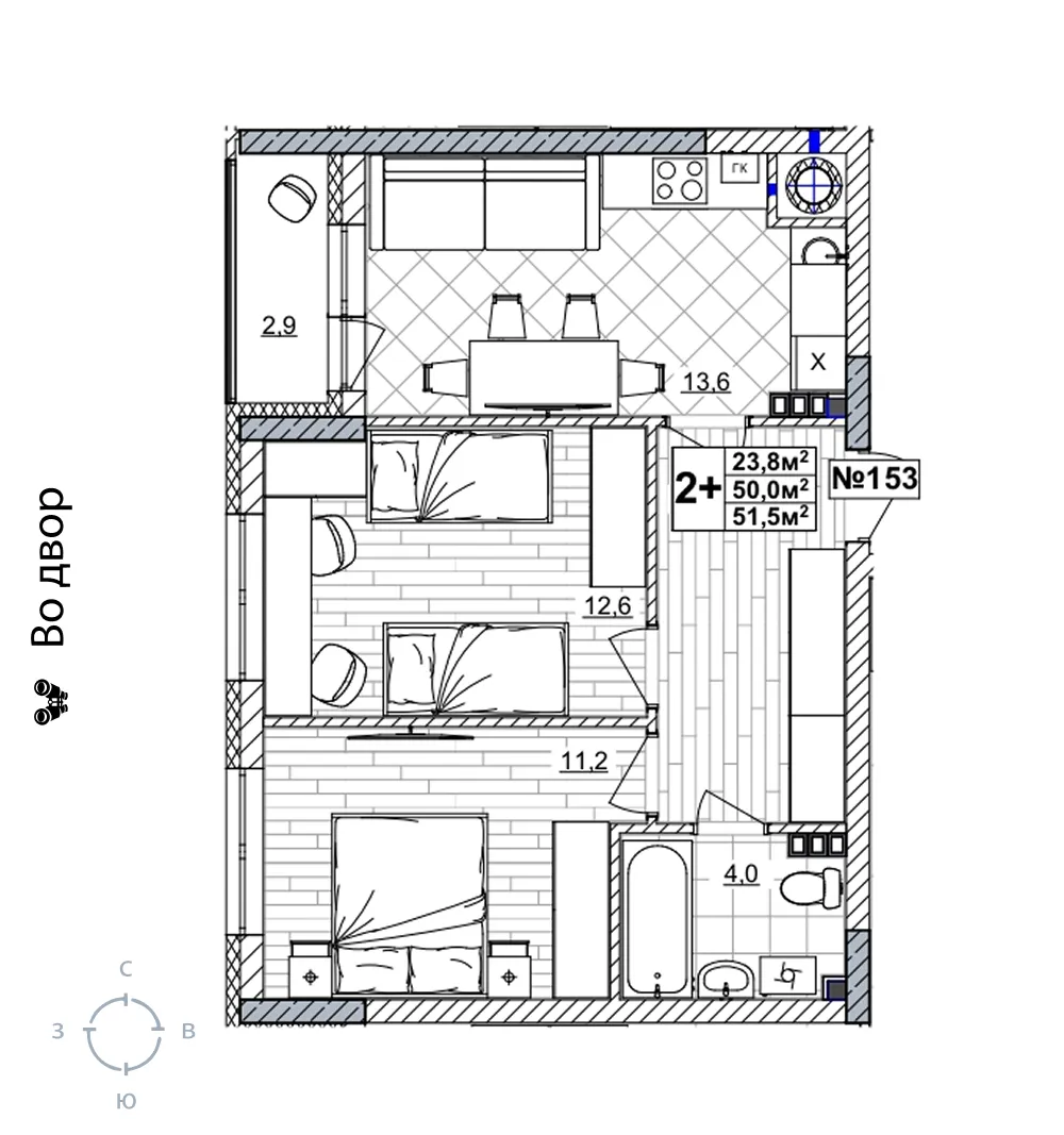 Квартира 51.5 м2