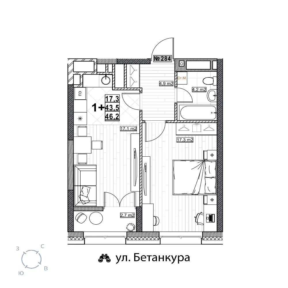17.3 м2